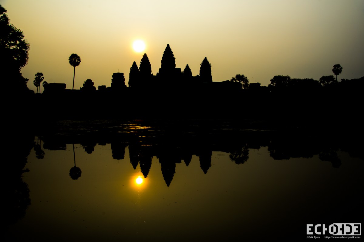 Sunrise over Angkor Wat Published April 1, 2013 at 2048 × 1367 in Cambodia ← Previous Next → Early morning as the sun peaks over the top of the northern most tower at Angkor Wat.