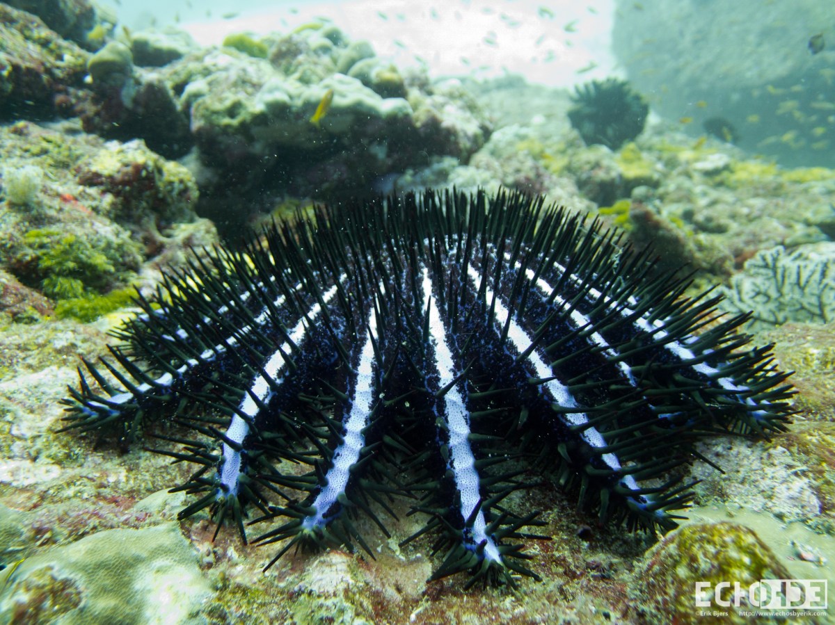 Crown of Thorns Published April 1, 2013 at 2048 × 1536 in Thailand ← Previous Next → A crown of thorns starfish (acanthaster planci), named for the poisonous thorn-like spines that cover its upper surface.