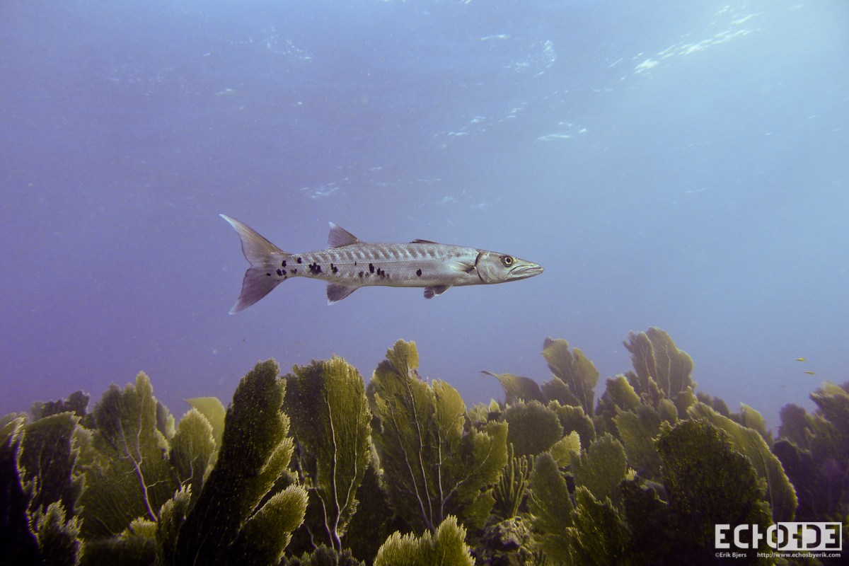 Ooh Barracuda Published April 9, 2013 at 2048 × 1367 in Key Largo dive trip ← Previous Next → A barracuda swimming through the blue off of Key Largo Florida.