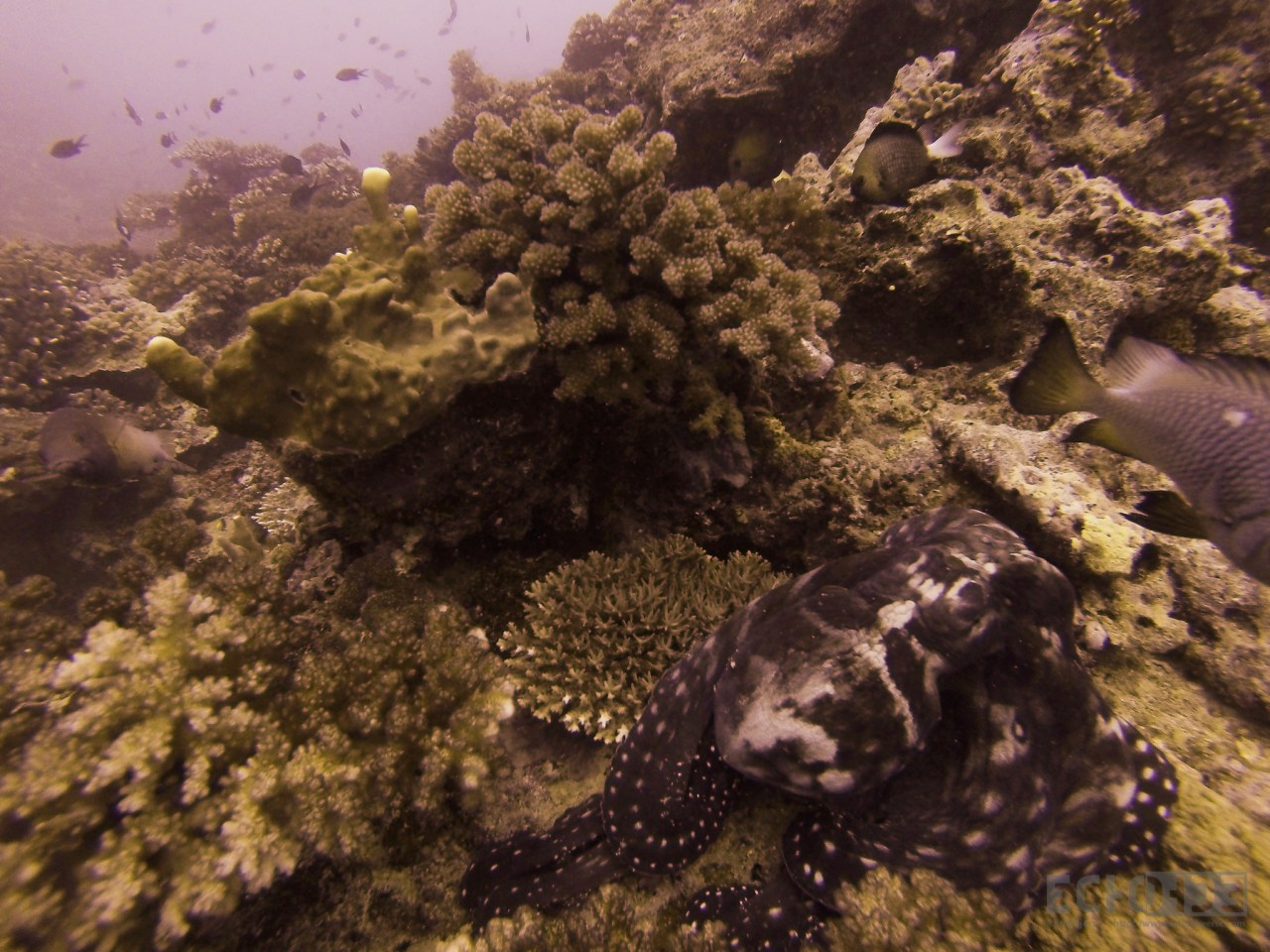 On my dive today with my friend Nick and with Aqua Trek in Beqa Lagoon I seem to have accidentally changed my GoPro from video mode to time-lapse video mode resulting in around 1500 still images. At first I was a little disappointing as when I went to do play back on the camera I could not see this time-lapse video and thought I had missed the video of an octopus swimming from hole to hole as he tried to avoid some fish that were annoying him (and probably trying to get away from me as well). However my mistake is your gain as I now have a series of photos to upload showing the octopus swimming. Now enjoy the photos and look forward to more posts from my diving in Papua New Guinea and Fiji and some videos taken with my new toy.