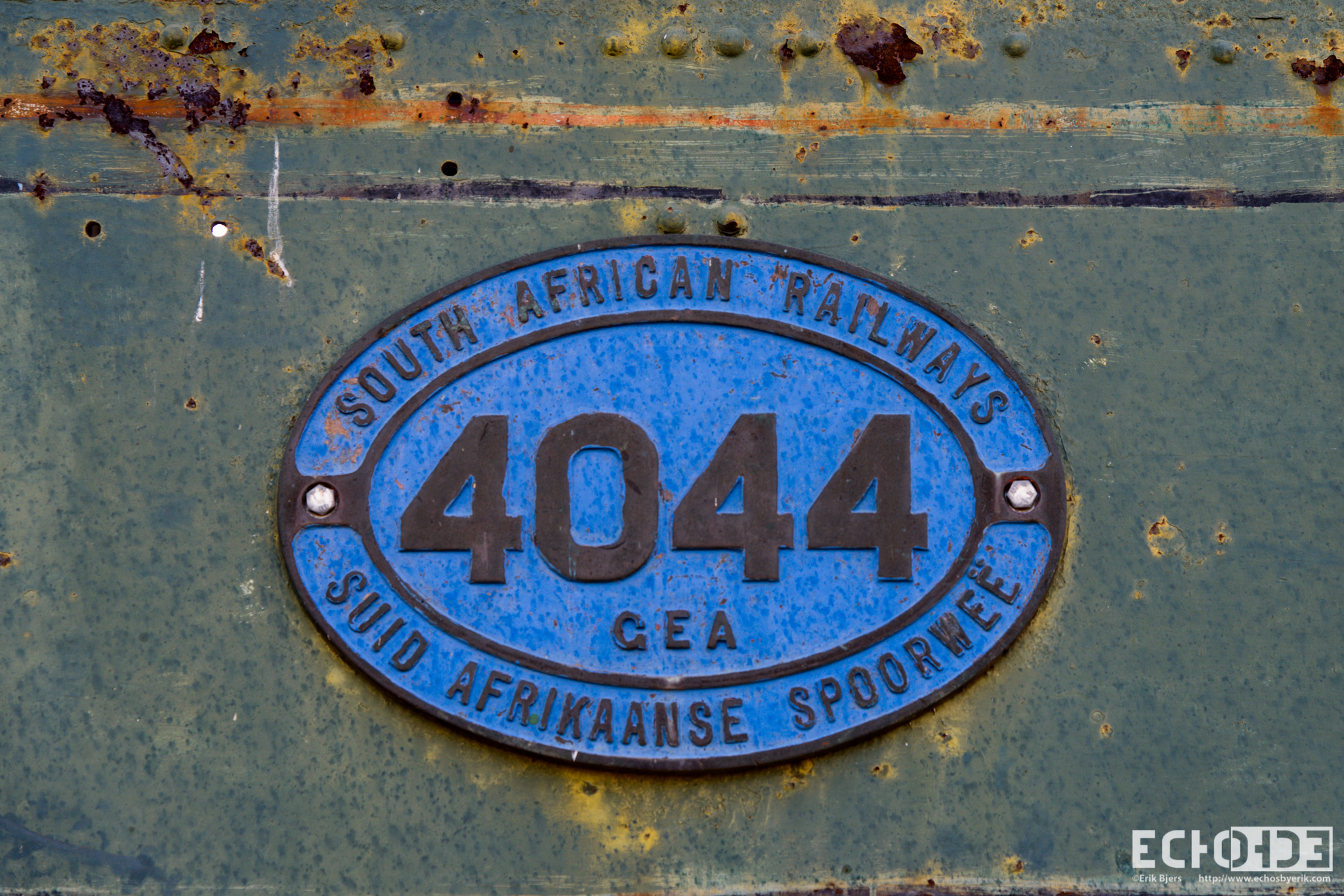 ECHOs – Cullinan Rifilwe – South Africa – 4044 Published July 19, 2013 at 2048 × 1367 in Rails, Trains, and Steam Engines Next → The engine ID badge of an old South African Railways steam engine.