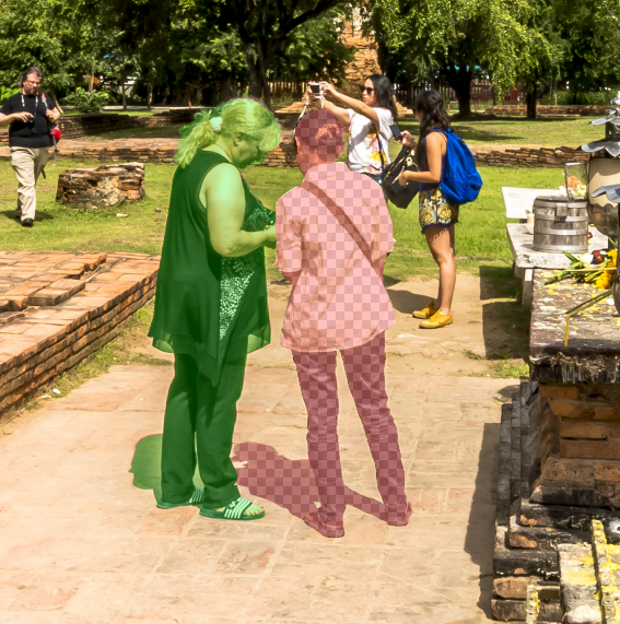 Now we need to replace the people we wish to mask with either green (to mask in) or red (to mask out) and of course the easiest way to do this is select everything on the layer, delete it, and fill in the empty space with the color you want to use. TIP: Make sure your color selection is set to web colors only to make things easier