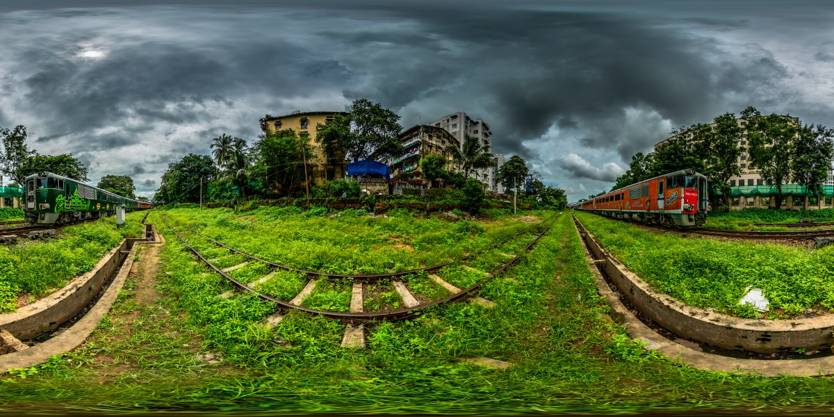 PANO_JPG – Erik BJers – Phaya Lan and Yangon Central Stations – Yangon (Rangon), Myanmar (Burma) – Inside the Market – Passing Train Published September 6, 2015 at 9392 × 4696 in Walking the Rails in Yangon (Rangon) Next → 16.781246 96.157181