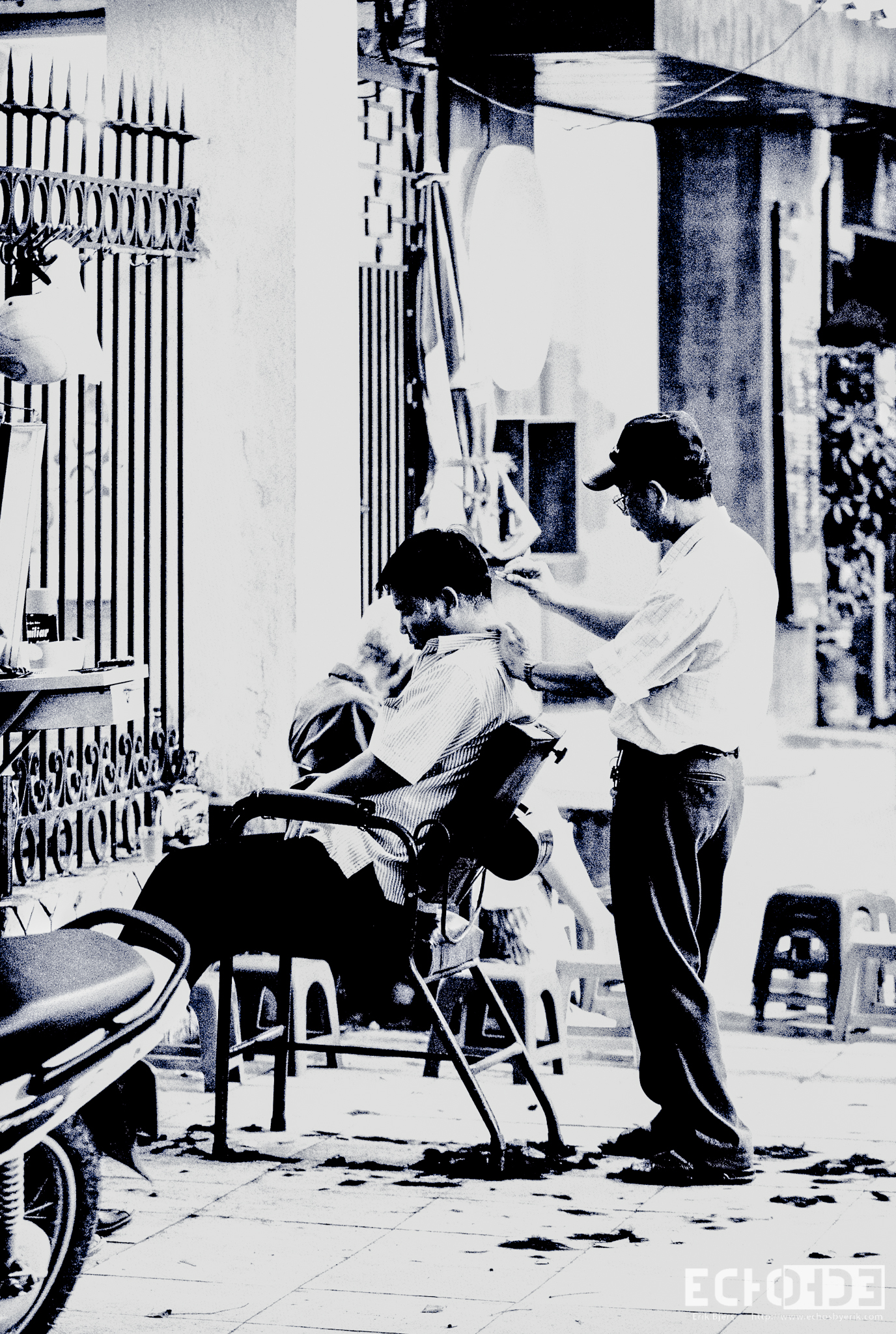 Haircut Published April 1, 2013 at 1376 × 2048 in Vietnam ← Previous Next → A street barber, typical of Hanoi, gives a man a haircut on the streets of Hanoi.