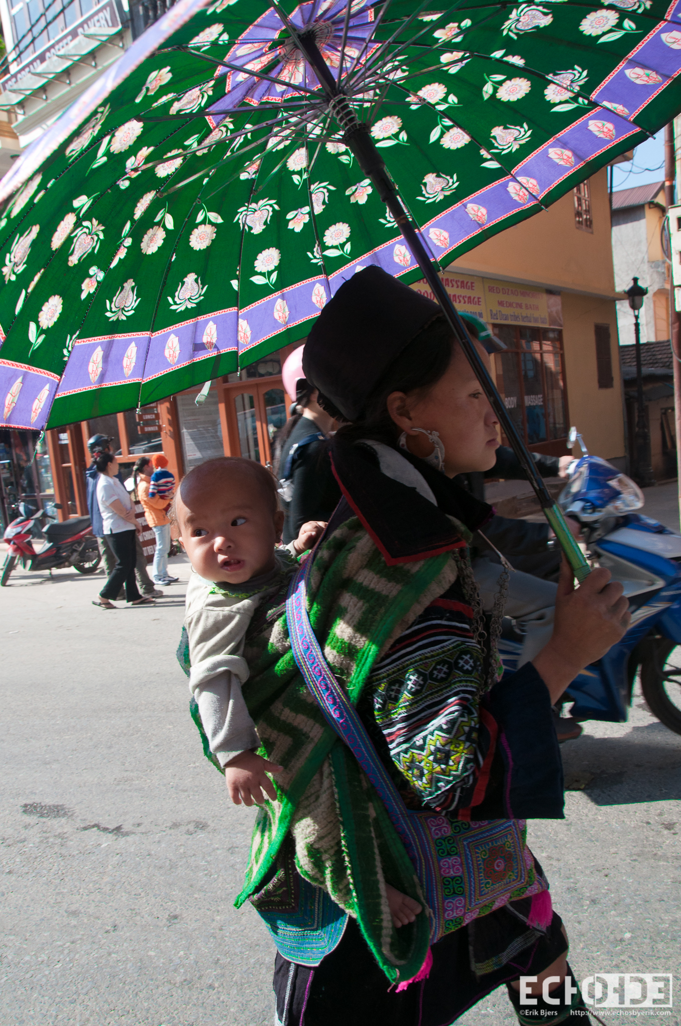 Under my Umbrella Published April 1, 2013 at 1360 × 2048 in Vietnam Next → A member of the Tay ethnic group walks through the town of Sapa in northern Vietnam carrying her baby and sheltering from the sun under her umbrella.